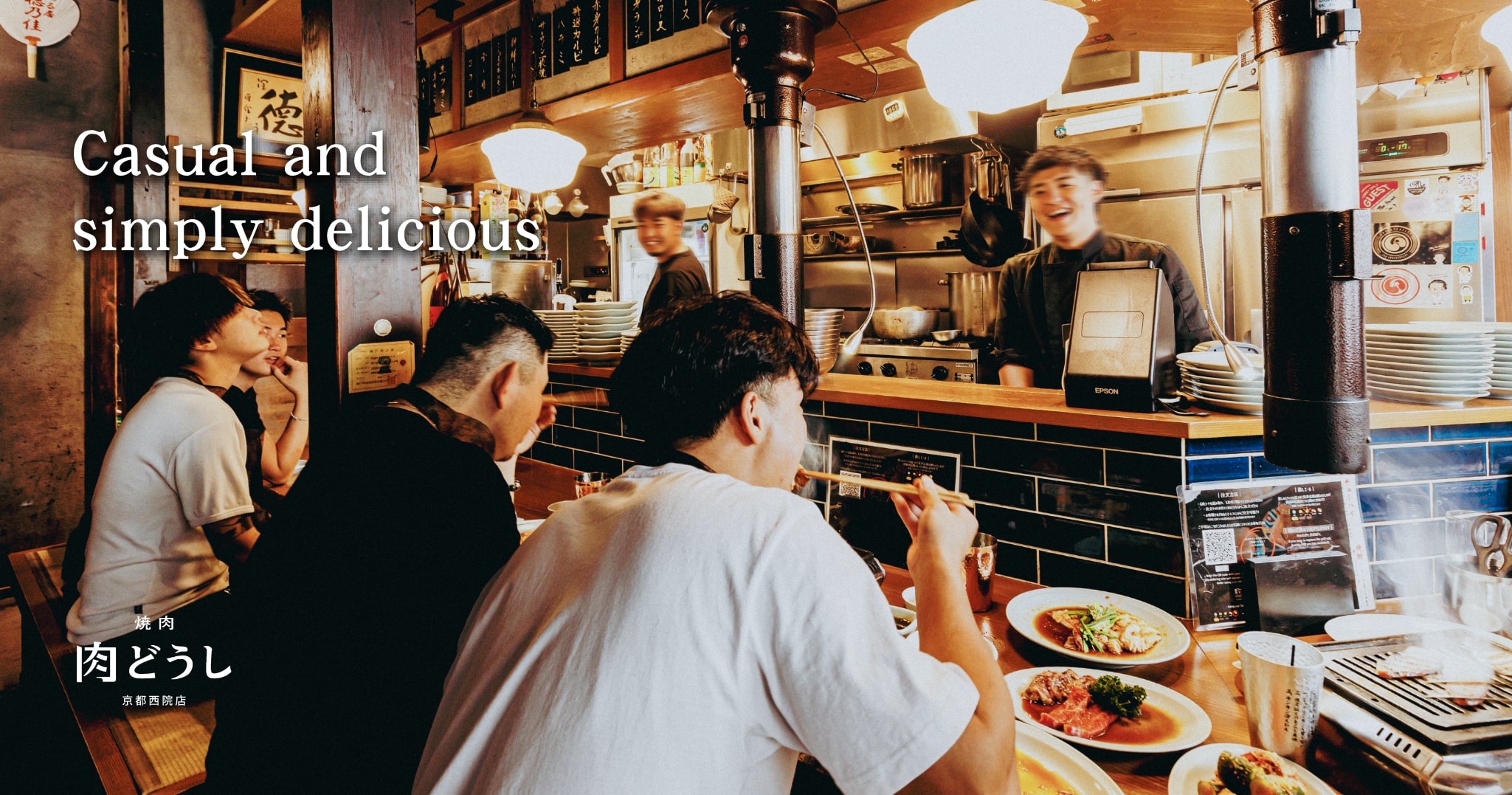 The counter seating surrounds the open kitchen, where the sizzling sound of meat, the savory aroma, cheerful conversations, and bursts of laughter blend together, filling the restaurant with energy. This lively atmosphere is truly the essence of Nikudoshi.